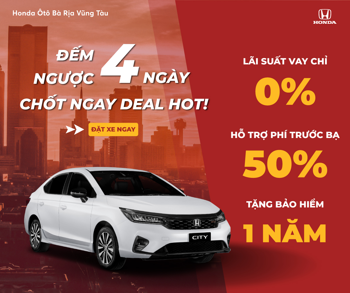 Thời gian không chờ đợi! Chỉ còn 4 ngày để chớp lấy cơ hội nhận ưu đãi cực hấp dẫn khi mua Honda City – mẫu sedan mạnh mẽ, hiện đại và tiết kiệm nhiên liệu hàng đầu phân khúc.