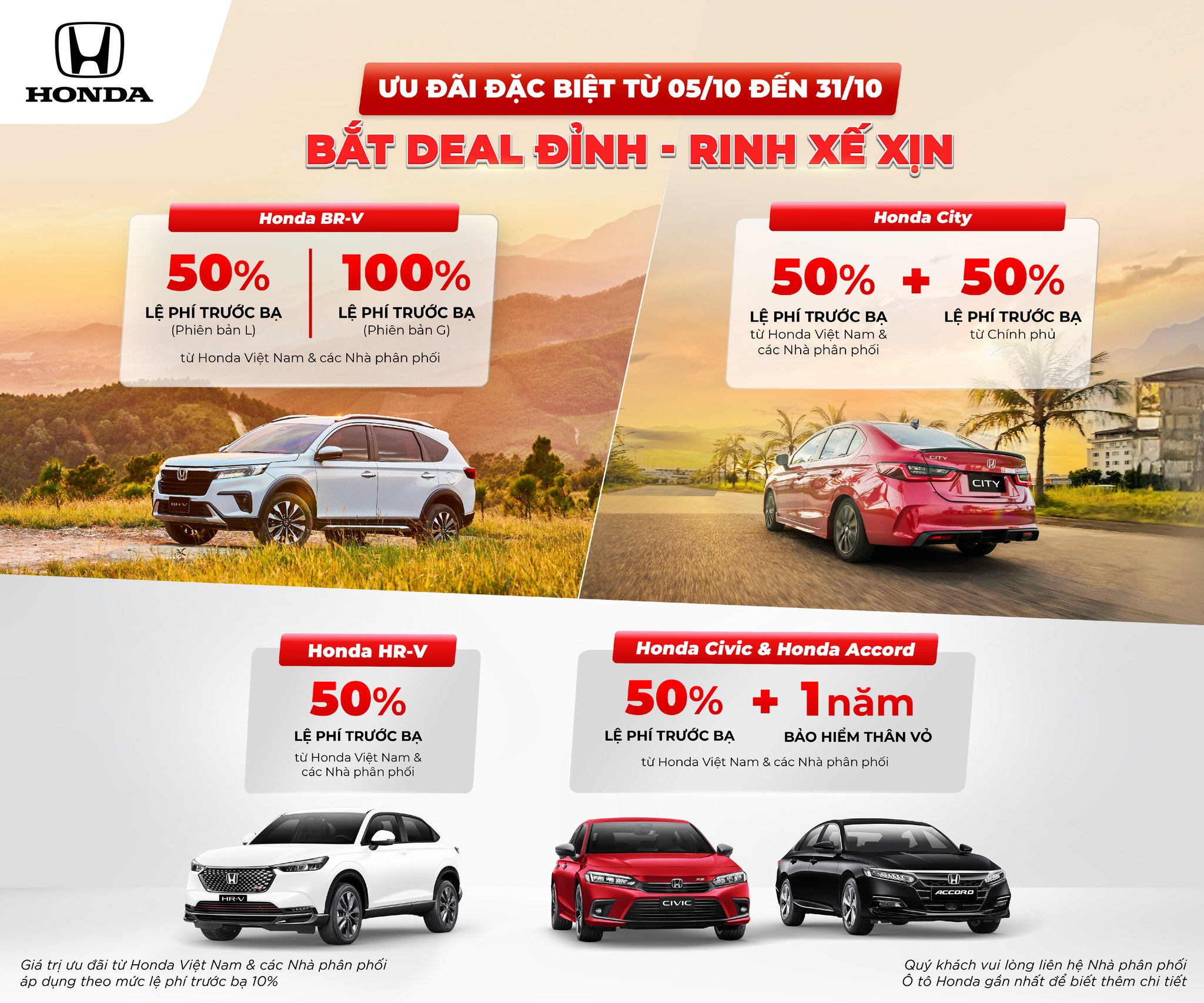 Đón tháng Mười tưng bừng với những ưu đãi cực chất, Honda Việt Nam mang đến cơ hội sở hữu các mẫu xe ấn tượng cho khách hàng đang tìm kiếm một người bạn đồng hành bền bỉ, đáng tin cậy cho những khởi đầu mới thuận lợi.