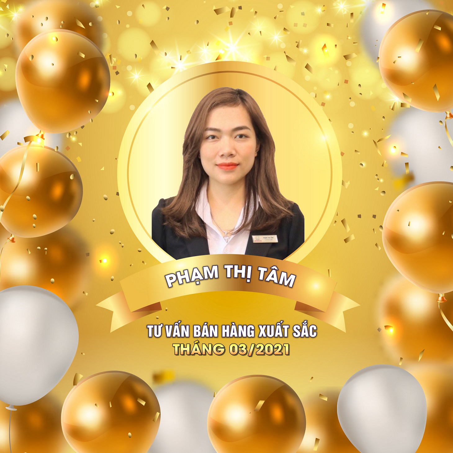 Chúc mừng chị Phạm Thị Tâm là tư vấn bán hàng xuất sắc nhất Tháng 03/2021