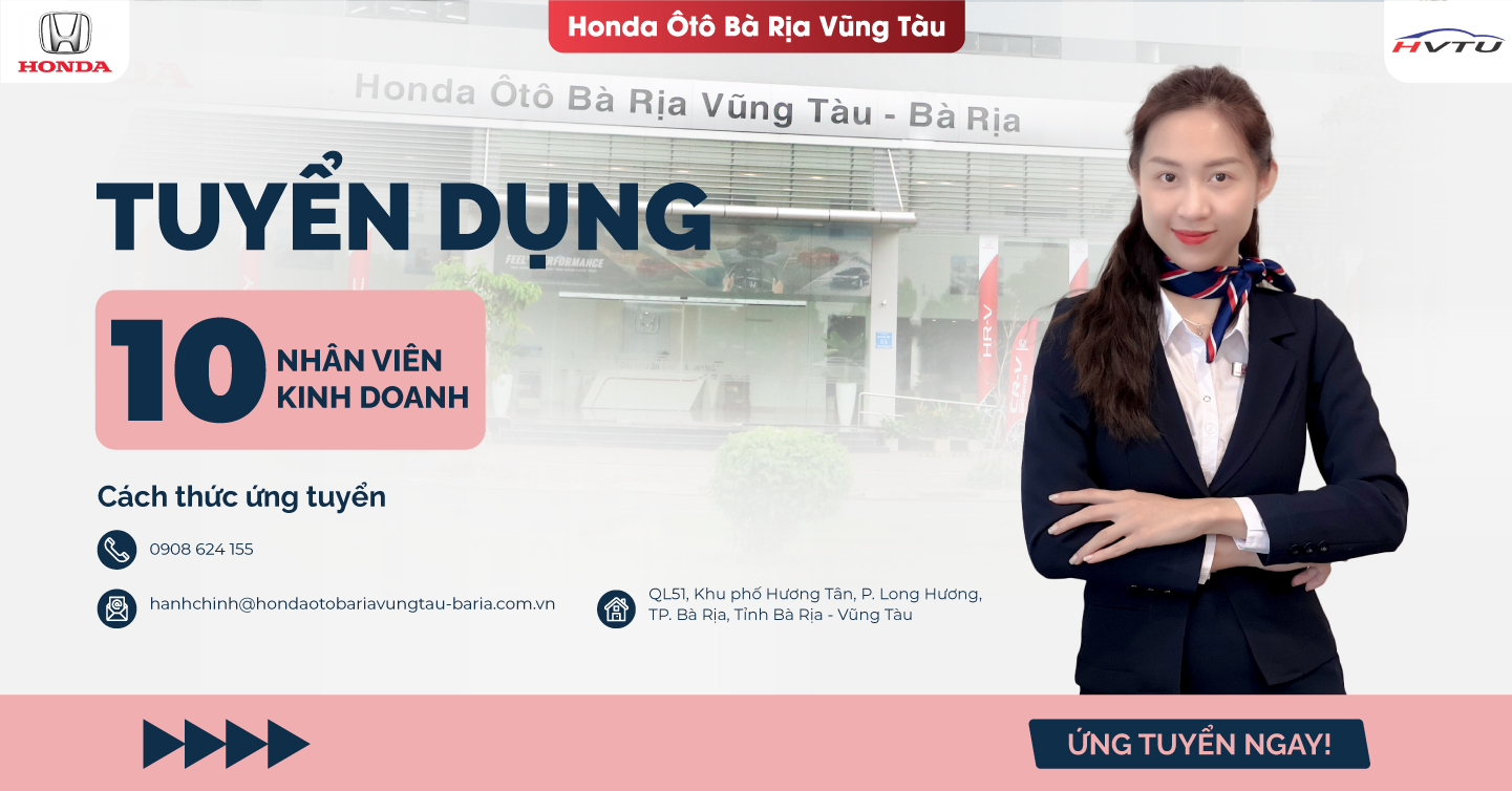 Honda Ôtô Bà Rịa Vũng Tàu - Bà Rịa cần tuyển dụng thêm các vị trí sau: