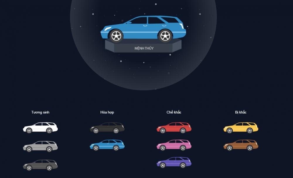 - Người mệnh Thủy không nên mua xe ô tô có màu vàng đậm, nâu (Thổ) hay màu đỏ, cam, hồng (Hỏa).