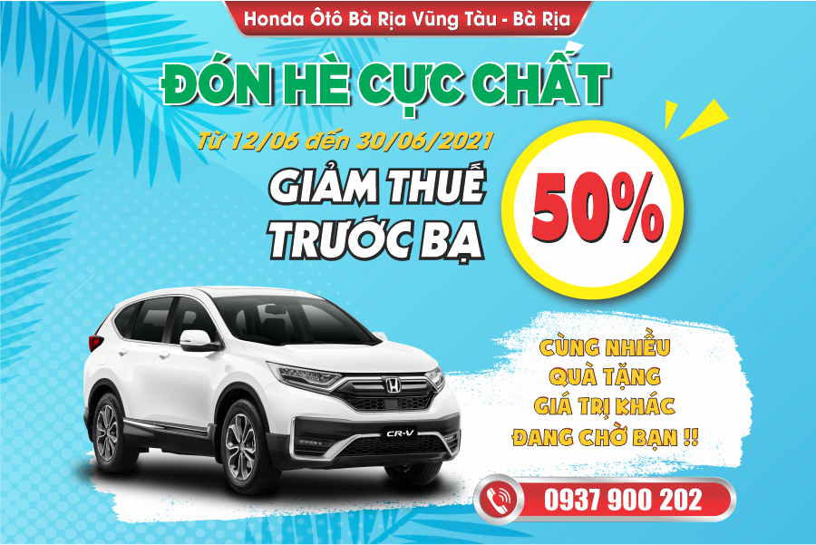 Nhằm chung tay hỗ trợ khách hàng trong hoàn cảnh khó khăn trước dịch bệnh Covid-19, đồng thời tri ân sự tin tưởng và đồng hành của Quý khách hàng, Honda Ô tô Bà Rịa Vũng Tàu - Bà Rịa thực hiện chương trình "Khuyến mãi chào hè - Giảm 50% lệ phí trước bạ".