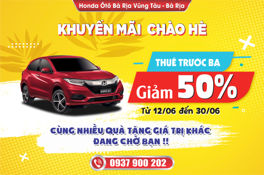 Nhằm chung tay hỗ trợ khách hàng trong hoàn cảnh khó khăn trước dịch bệnh Covid-19, đồng thời tri ân sự tin tưởng và đồng hành của Quý khách hàng, Honda Ô tô Bà Rịa Vũng Tàu - Bà Rịa thực hiện chương trình "Khuyến mãi chào hè - Giảm 50% lệ phí trước bạ".