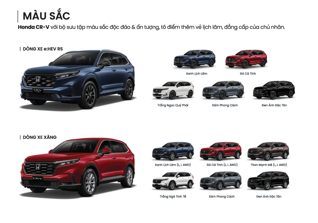 Cảm tác từ sự mạnh mẽ của chiếc xe SUV đô thị đẳng cấp, Honda CR-V sở hữu kiểu dáng thể thao cao cấp và tinh tế hoàn toàn mới, khơi dậy khí chất uy phong của chủ nhân và mang đến cảm giác mãn nhãn đầy cuốn hút.