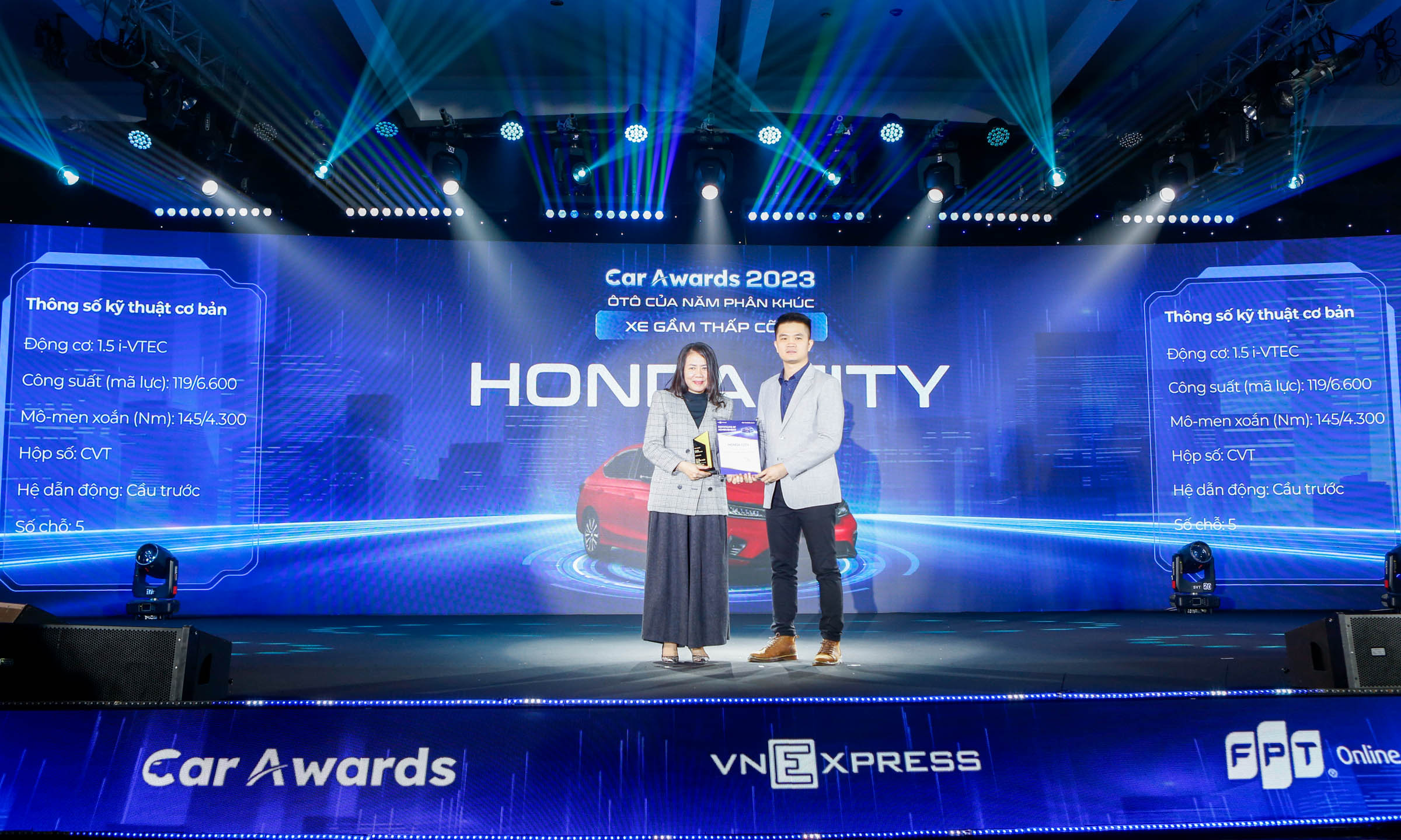 Tại Lễ công bố và trao giải “Ô tô của năm 2023” (Car Awards 2023) do báo VnExpress tổ chức, Honda CR-V vinh dự nhận Giải thưởng “Ô tô của năm” toàn thị trường và “Ô tô của năm” phân khúc xe Crossover cỡ C, Honda City vinh dự nhận Giải thưởng “Ô tô của năm”phân khúc xe gầm thấp cỡ B do Hội đồng chuyên môn, độc giả và người dùng nhiều kinh nghiệm trong lĩnh vực ô tô bình chọn.