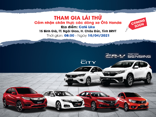Chương trình lái thử và trải nghiệm các dòng xe Honda trong tháng 04/2021 cùng Honda Ôtô Bà Rịa Vũng Tàu - Bà Rịa