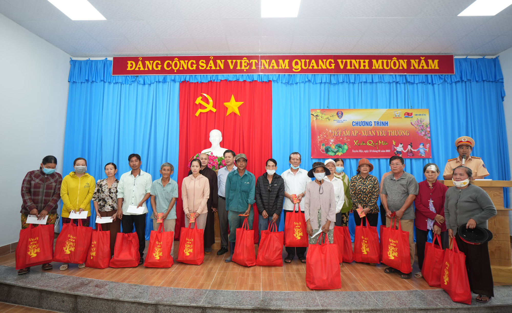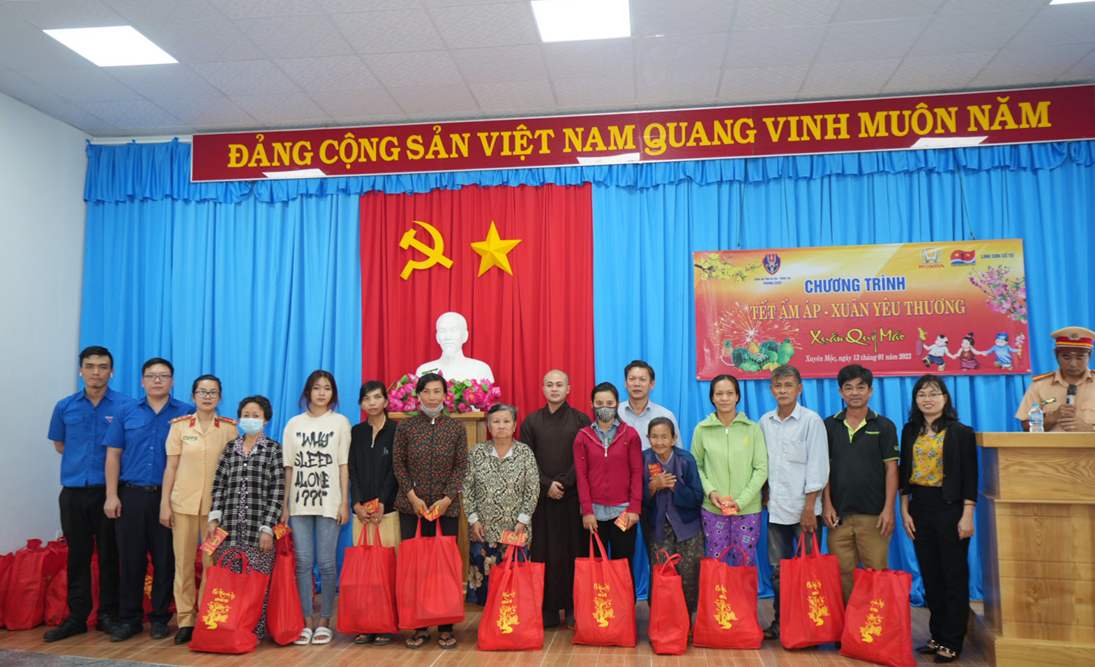 Tại đây, đơn vị đã trao 110 phần quà gồm gạo, mì tôm, bánh kẹo, nhu yếu phẩm và tiền mặt cho bà con có hoàn cảnh khó khăn góp phần hỗ trợ bà con ăn tết ấm no.