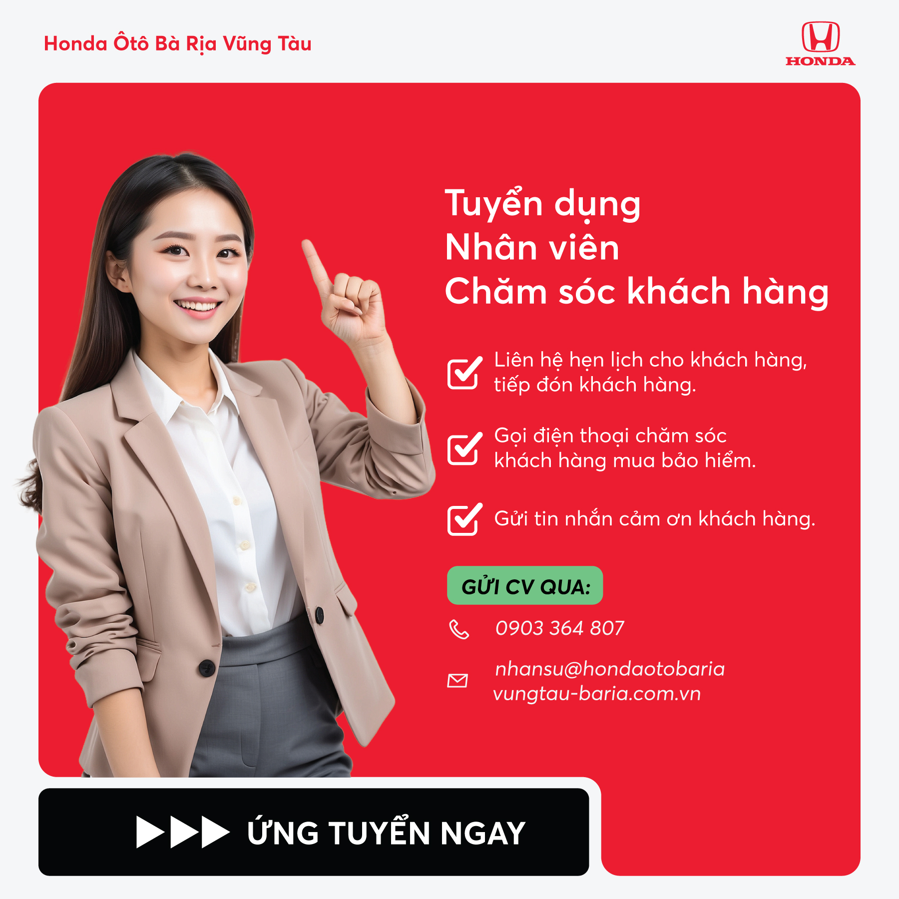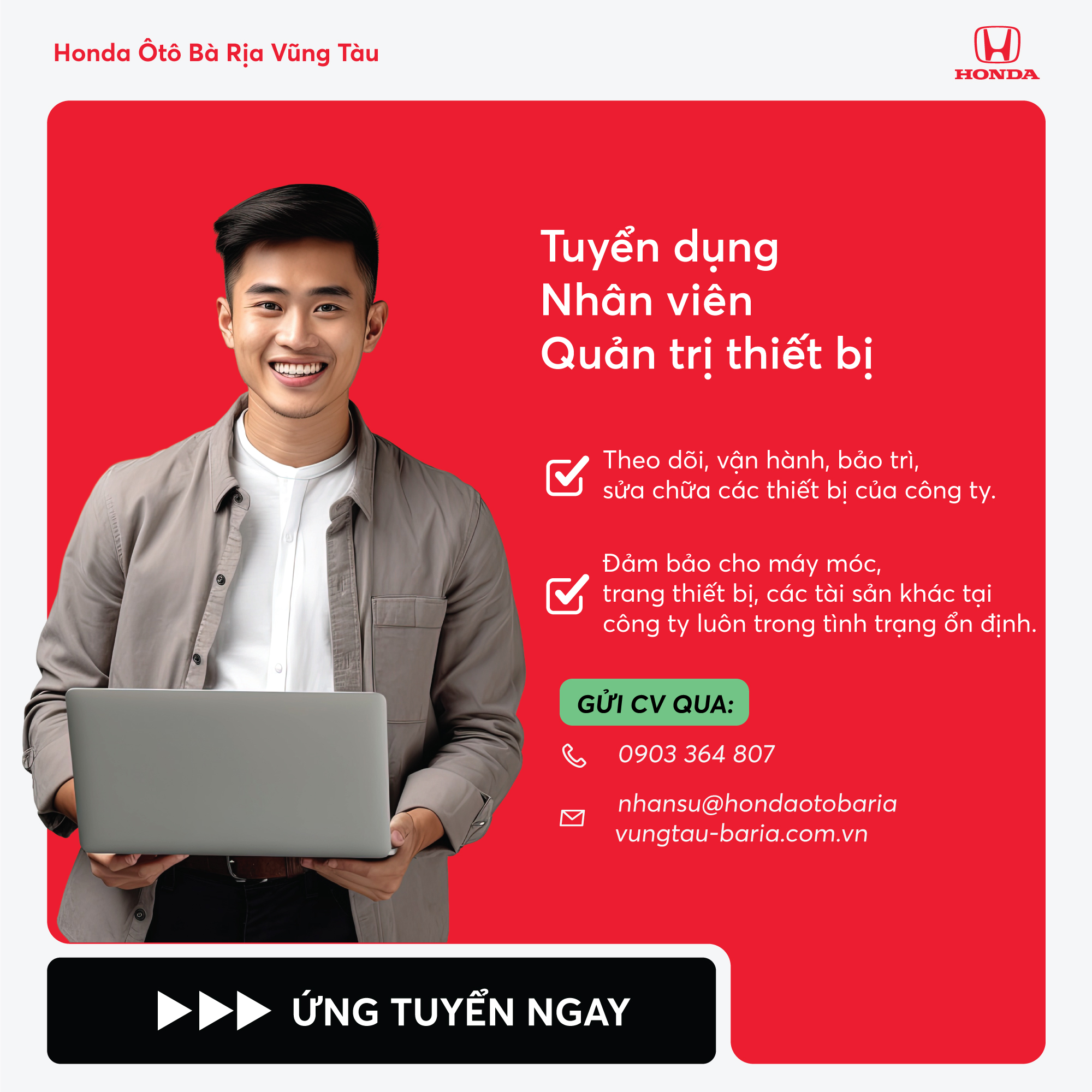 Honda Ôtô Bà Rịa Vũng Tàu thông báo tuyển dụng