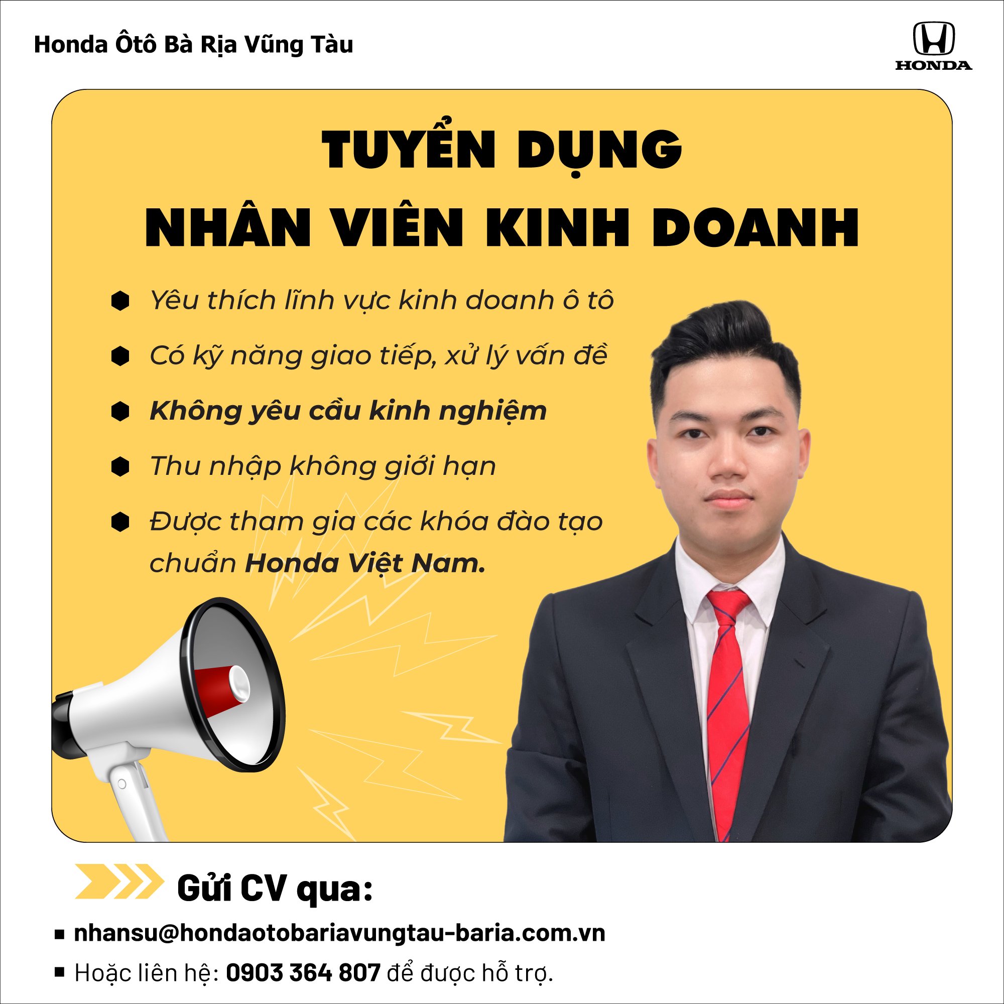 Đừng bỏ qua BẢNG TIN TUYỂN DỤNG THÁNG 6 tại Honda Ôtô Bà Rịa Vũng Tàu với hàng loạt đặc quyền hấp dẫn đang chờ đón các ứng viên tiềm năng.