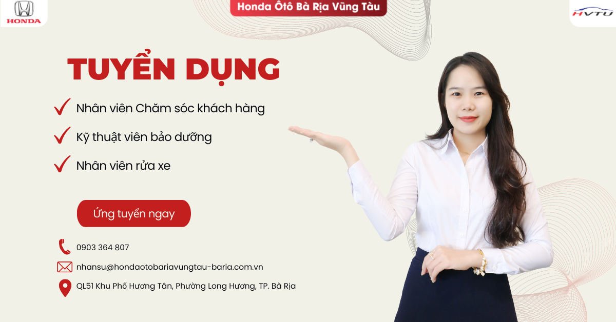 Honda Ôtô Bà Rịa Vũng Tàu - Bà Rịa cần tuyển dụng thêm các vị trí sau: