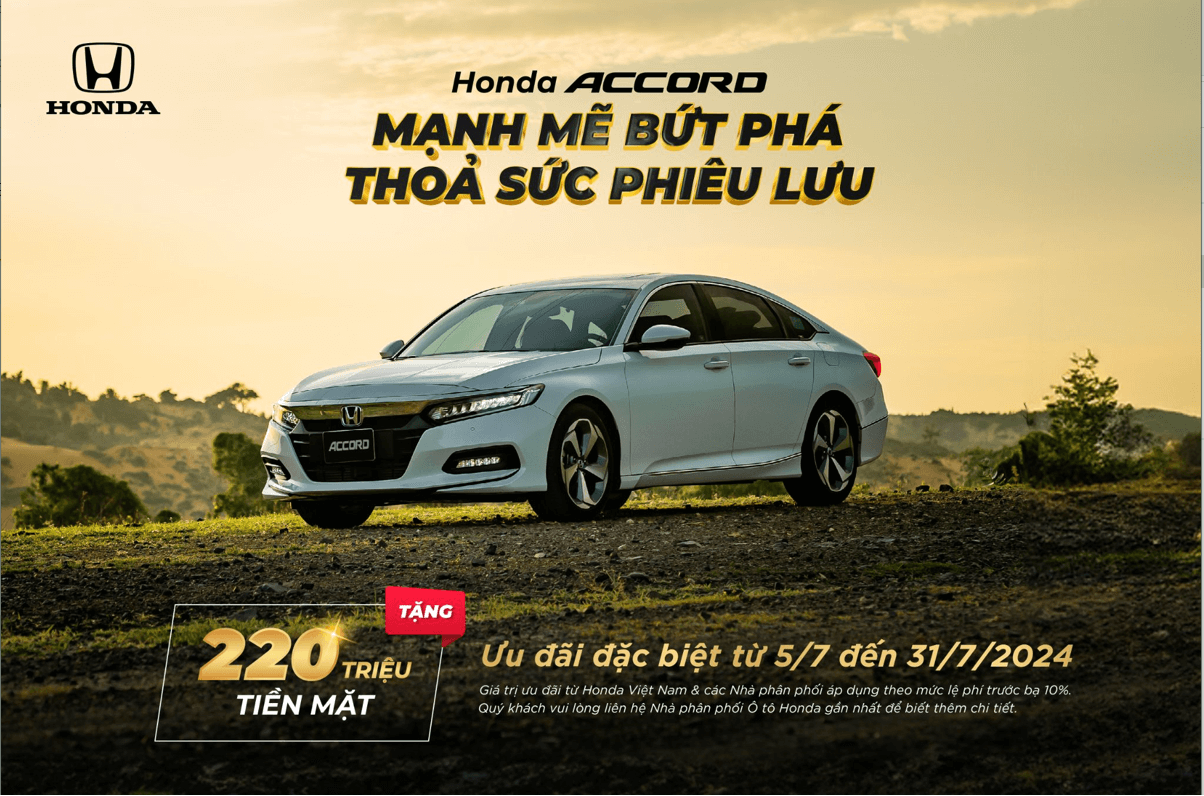 - Honda Accord: Tặng 220 triệu tiền mặt.