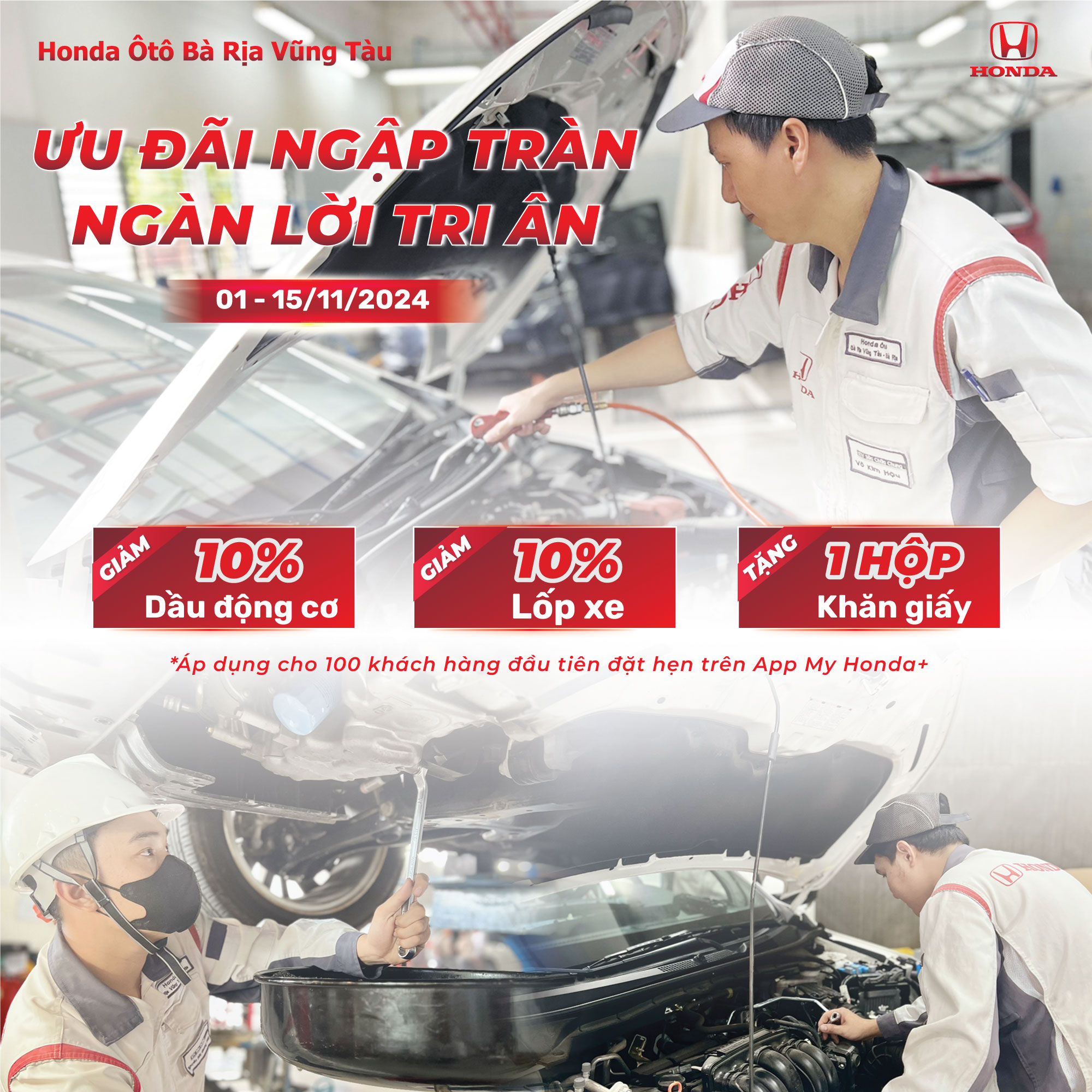 Ưu đãi áp dụng từ 01 - 15/11/2024, dành cho 100 khách hàng đầu tiên đặt hẹn qua App My Honda+