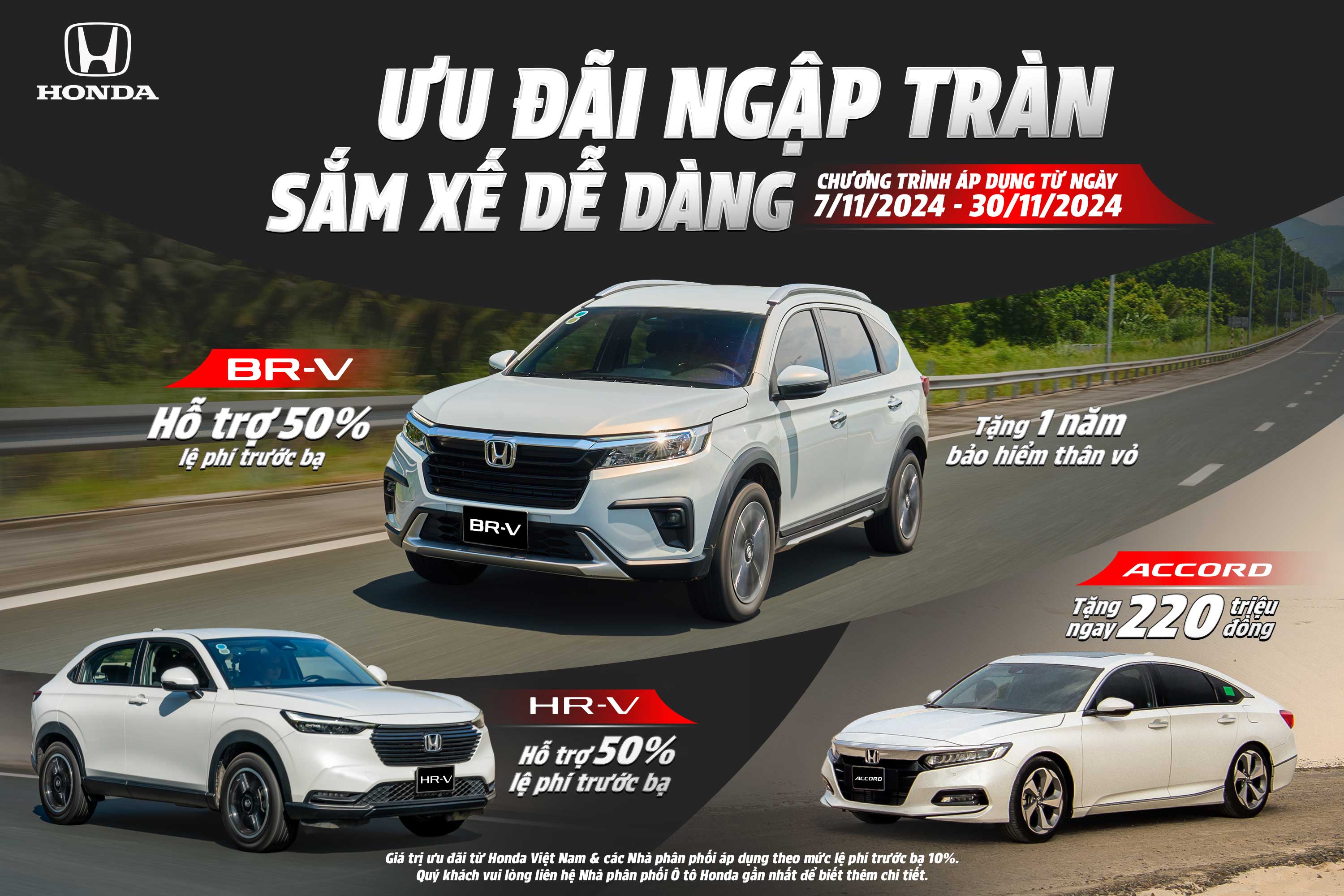 Với mong muốn mang đến cho khách hàng nhiều hơn nữa cơ hội trải nghiệm các mẫu xe ô tô nhập khẩu của Honda và tận hưởng những khoảnh khắc trọn vẹn bên gia đình, Honda Ôtô Bà Rịa Vũng Tàu triển khai chương trình khuyến mại hấp dẫn từ ngày 07 đến hết ngày 30 tháng 11 năm 2024 dành cho các dòng xe Honda HR-V, Honda BR-V, Honda Accord: