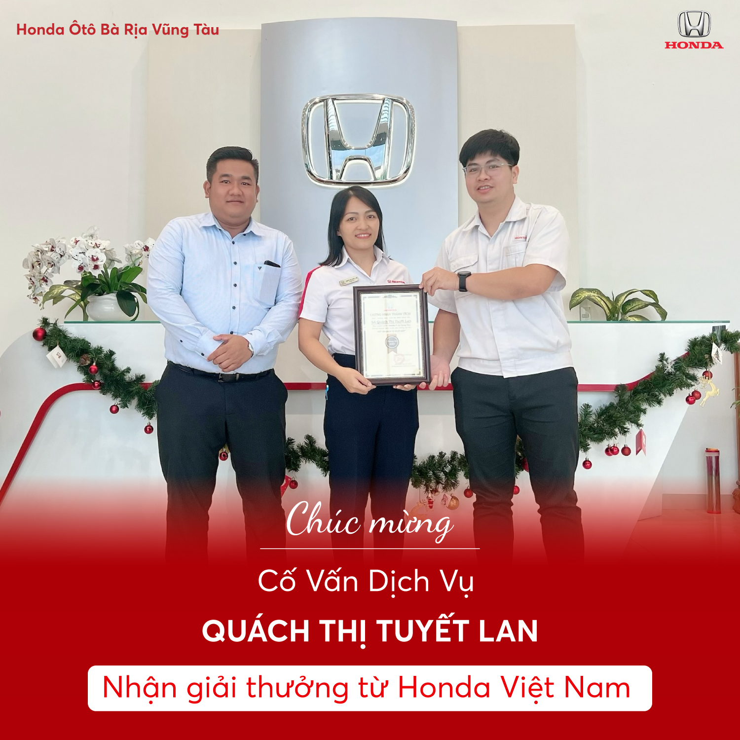 Honda Ôtô Bà Rịa Vũng Tàu hy vọng rằng Cố vấn Dịch vụ Quách Thị Tuyết Lan nói riêng và tập thể cán bộ công ty nói chung sẽ tiếp tục cố gắng hết mình, trau dồi kiến thức và kỹ năng để mang đến sự hài lòng cao nhất cho khách hàng.
